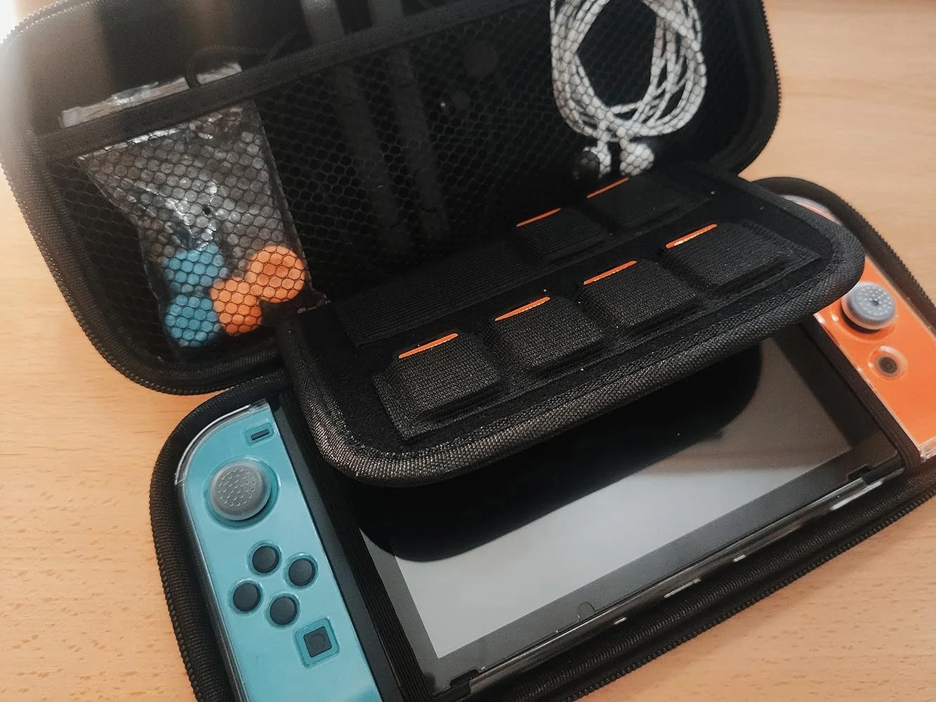 The case is really nice and comes with all the accessories. The only draw back was that the switch protector isn’t compatible, the holes don’t match up with the buttons or plug ins and the stand doesn’t work with the protector case on it.